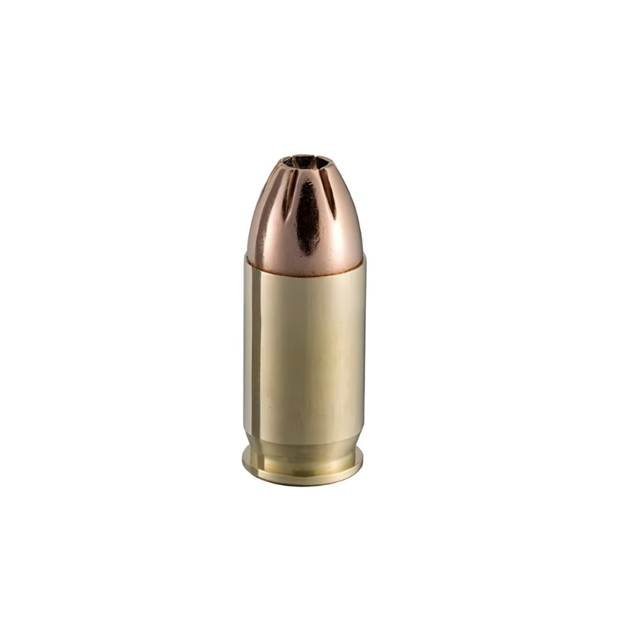 Projétil expansivo de boa penetração. A versão +P (mais pressão) é mais potente que a convencional.